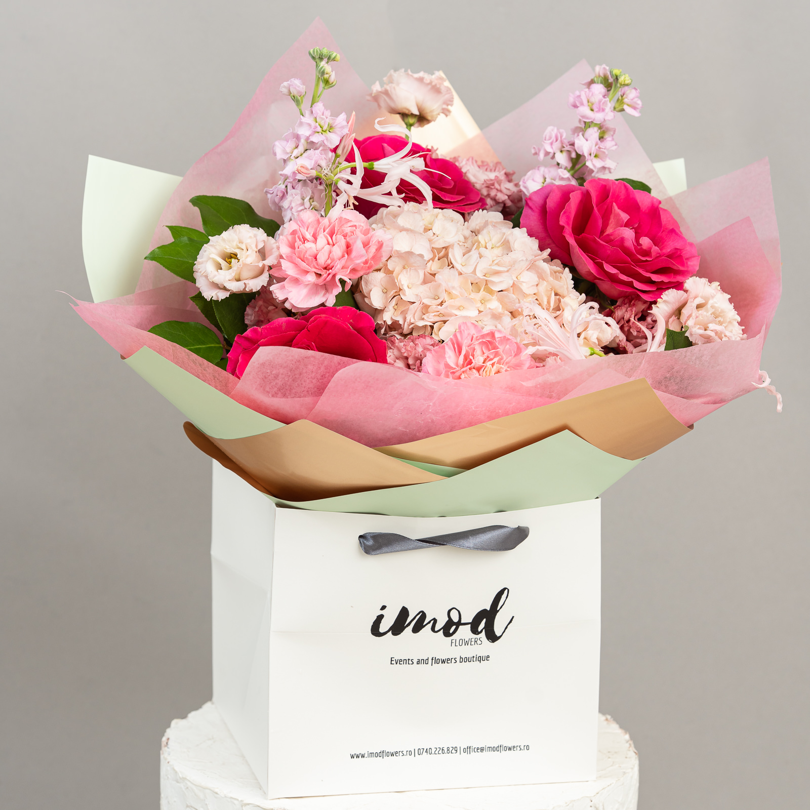 Buchetele de flori IMOD Flowers sunt create manual de floristi cu experienta, folosind doar flori proaspete si ambalaje premium. Compozitia fiecarui buchet poate varia usor in functie de sezonalitate si disponibilitate, dar garantam intotdeauna acelasi nivel de eleganta si calitate.